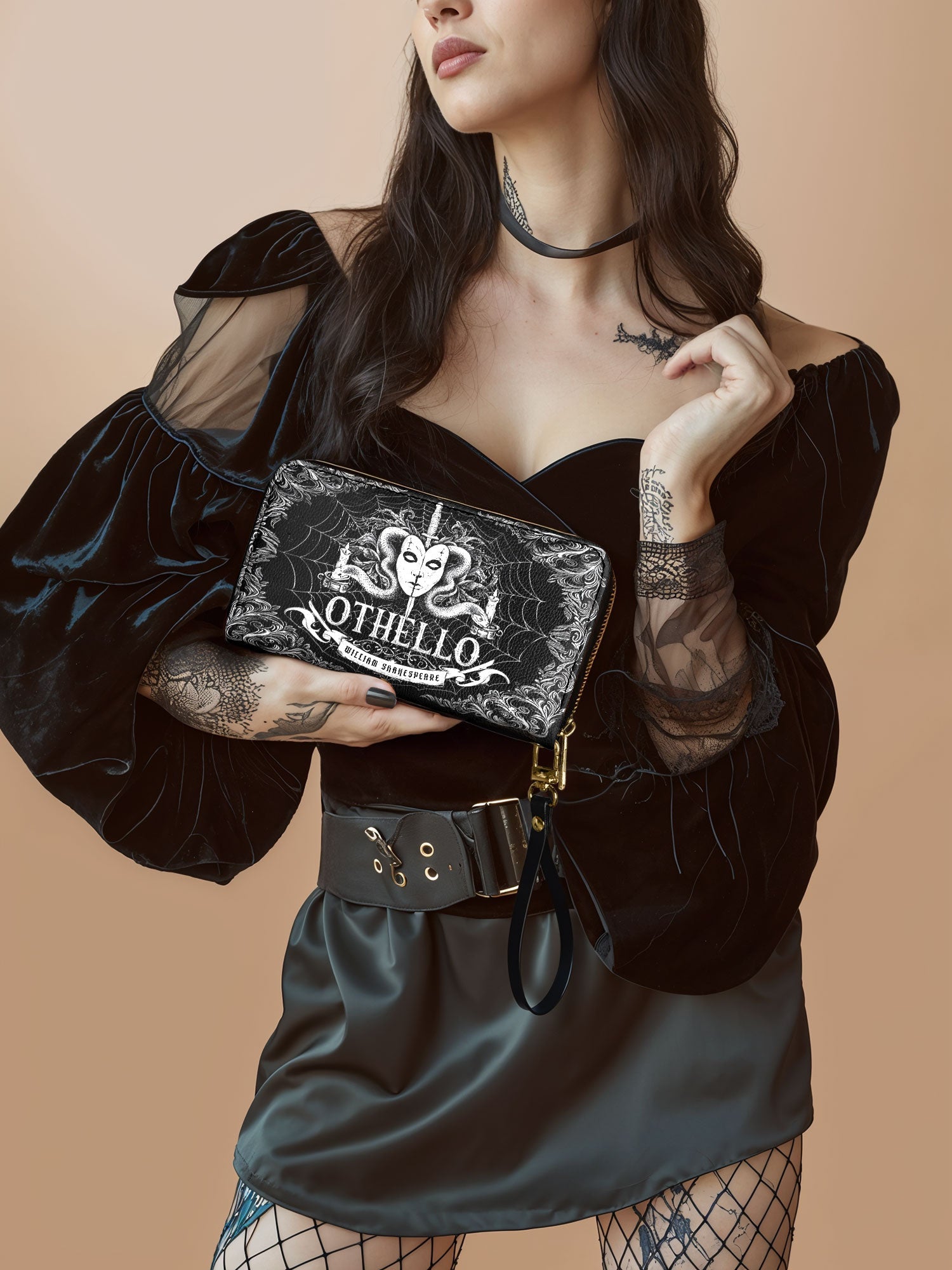 Omg! I love this wallet! I got the Codex of Gothic Tales with the cobwebs. I'm so excited I can't think of the actual title. Please forgive me. It's more stunning in person than on the website. I am saving up for the purse now. I highly recommend this site and products. Absolutely stunning wallet.