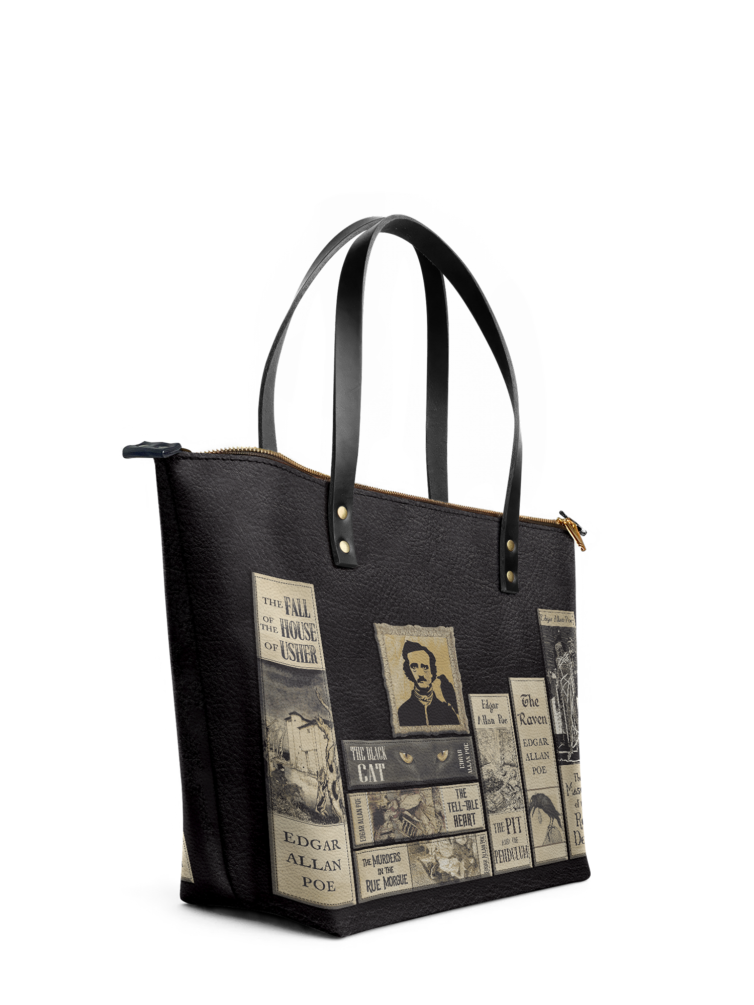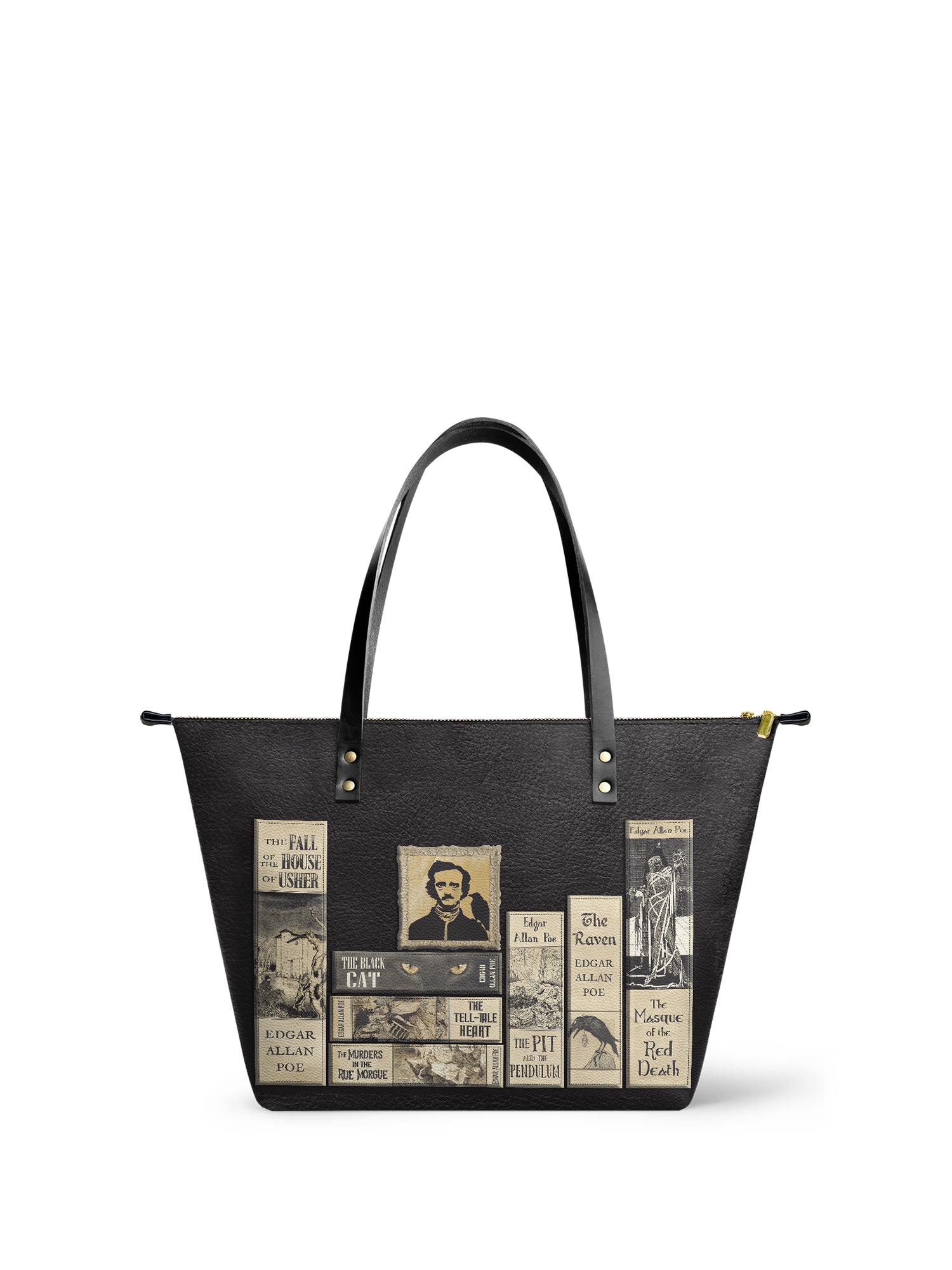 If your heart beats to the rhythm of being buried alive or placed in premature entombment, Lettoria's Poe's Library Tote is your talisman.