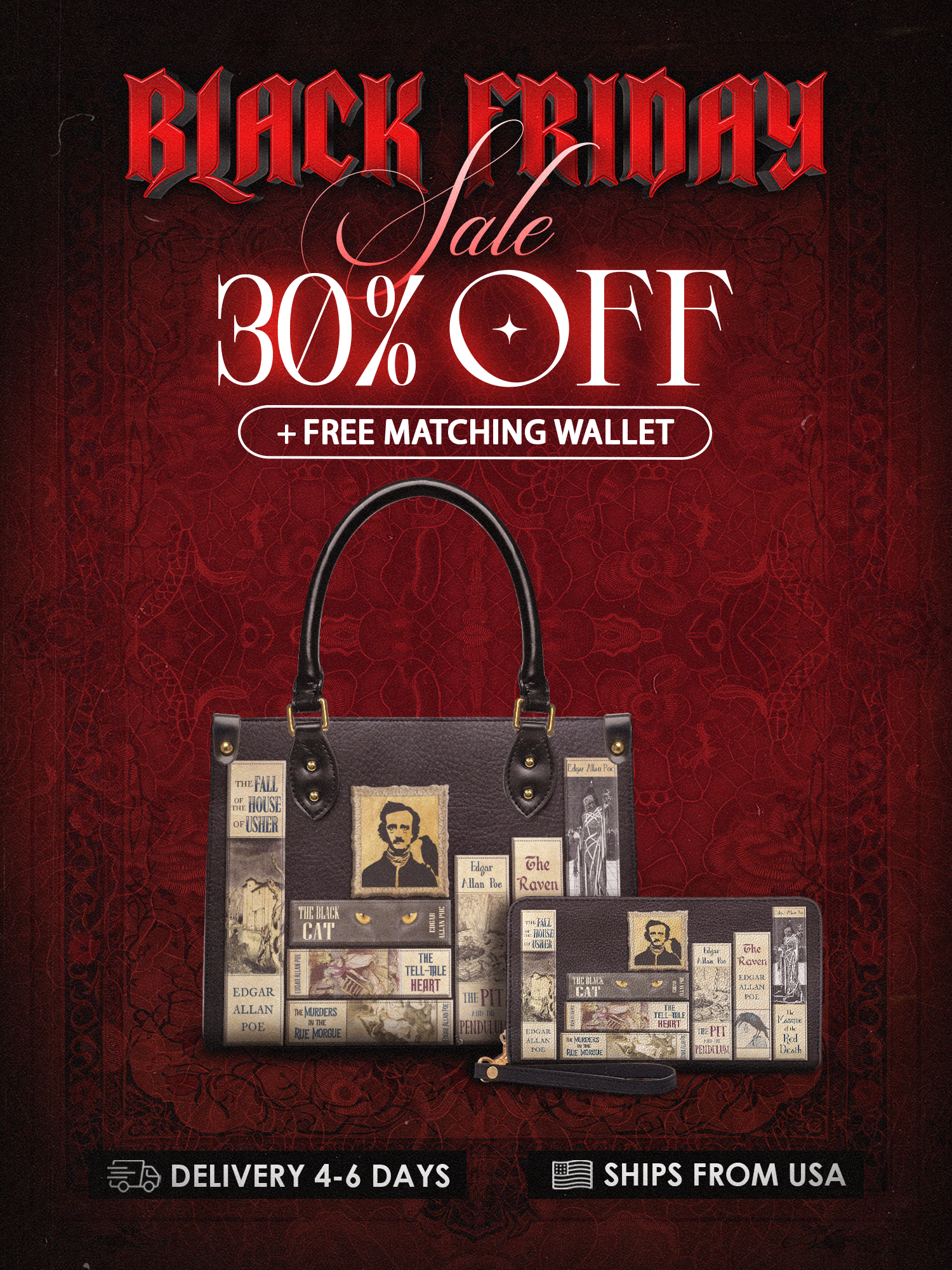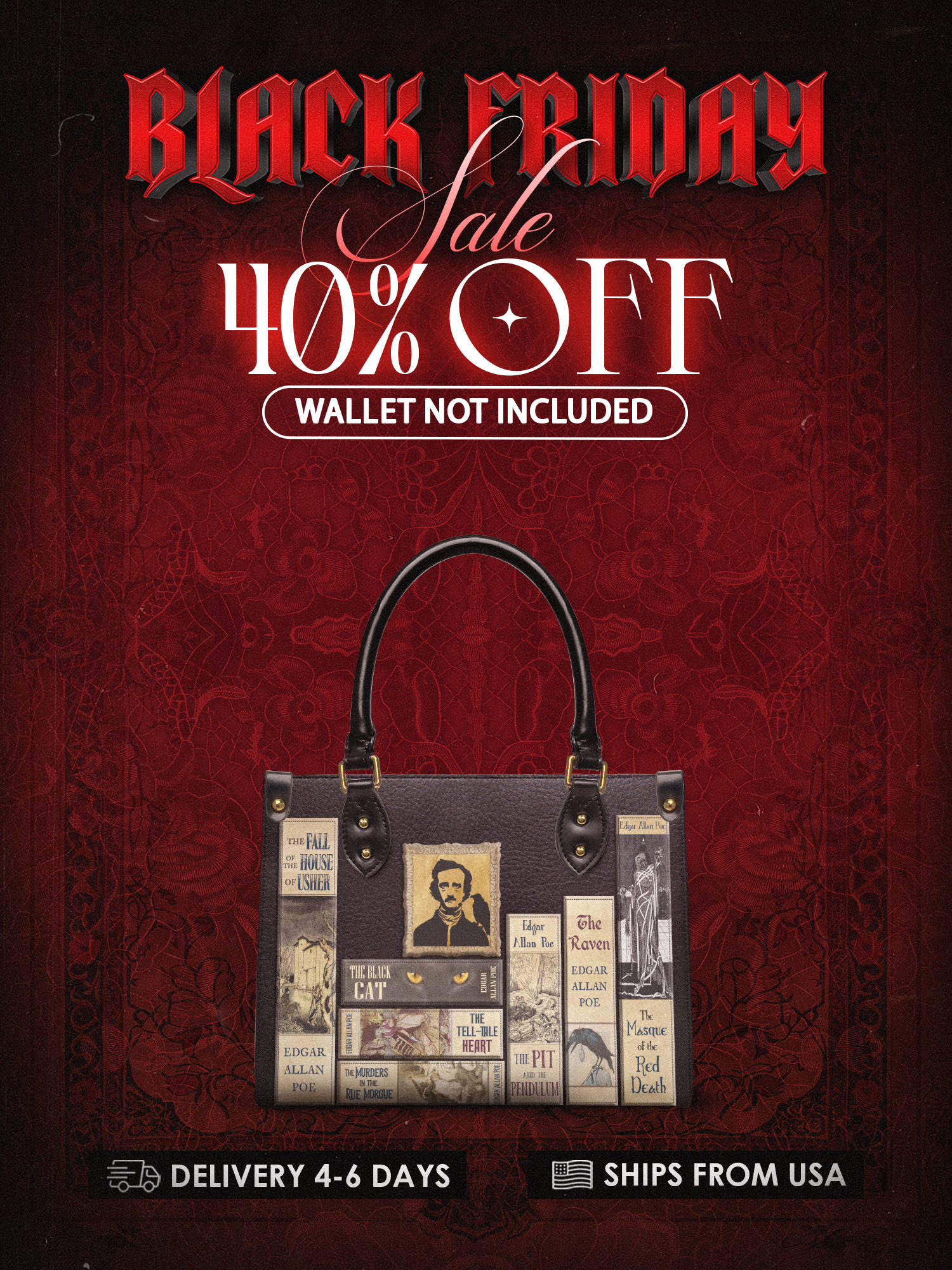 "Poe's Library" Ashen Black Small Leather Handbag Deal