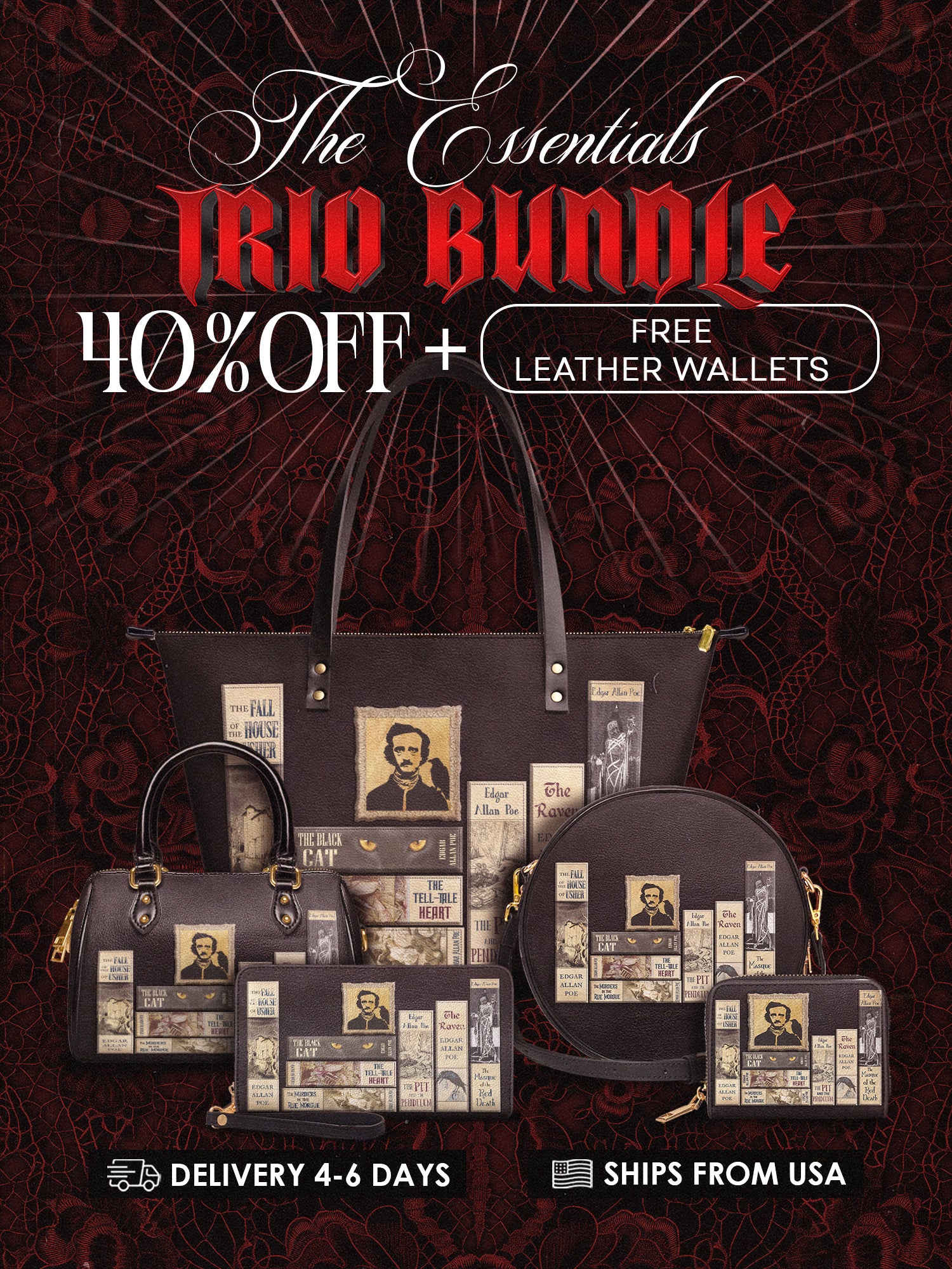 "Poe's Library" Ashen Black The Essentials Trio Bundle