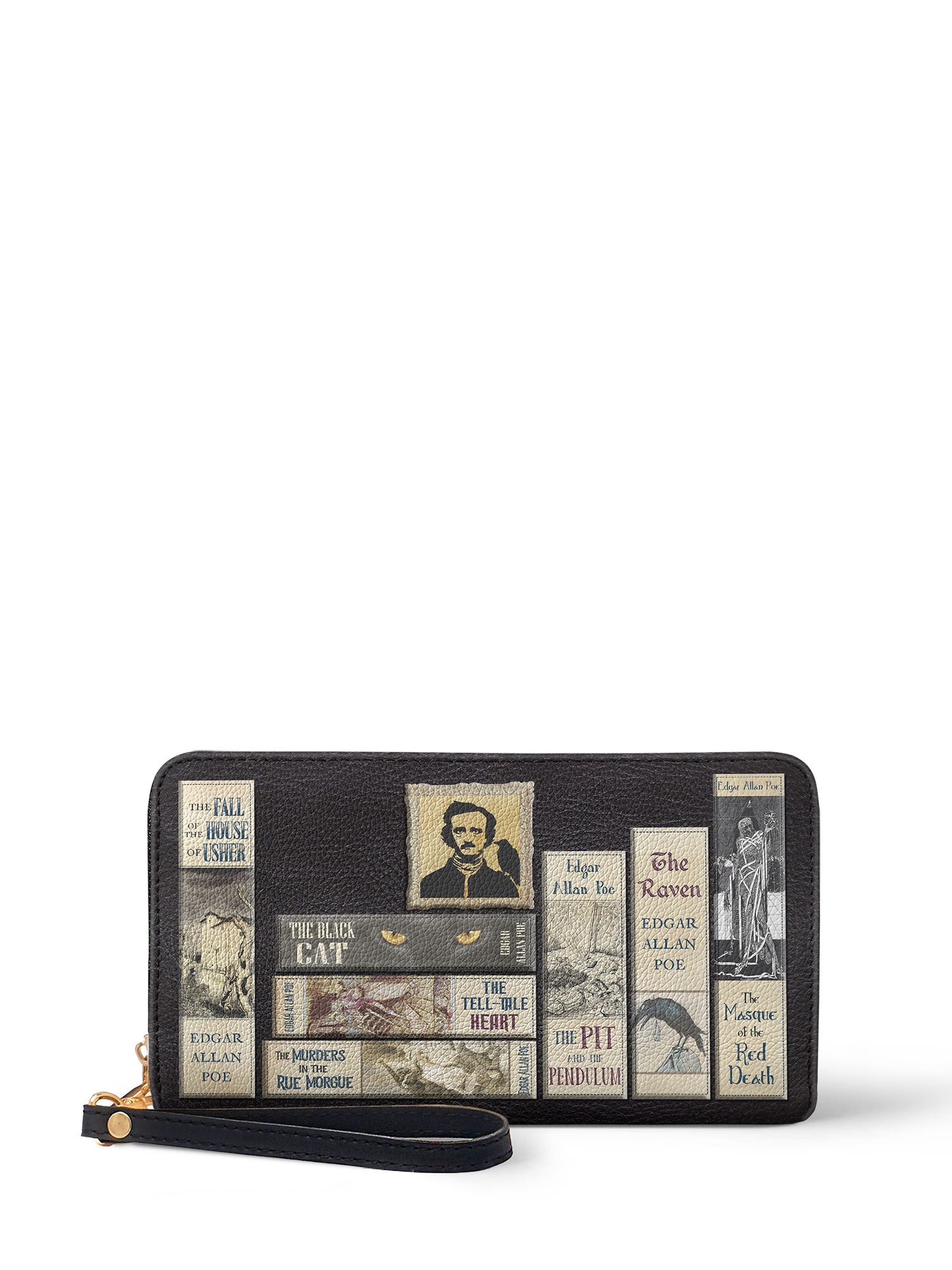 So I ordered a wallet. The " Poe Library" in ashen black. I already had a purse and really didn't think I needed another one but I really needed a new wallet.. But the problem was I really wanted the "Poes Library" in that gorgeous blue. So I did what anybody else would do the next day.I ordered it and the matching wallet. I got them all the same day.I fell in love with my blue purse! All my favorite stories ,the man himself , the blue, the black ....gorgeous. The interior, that soft yellow, Perfect! Enough room for everything that I need.