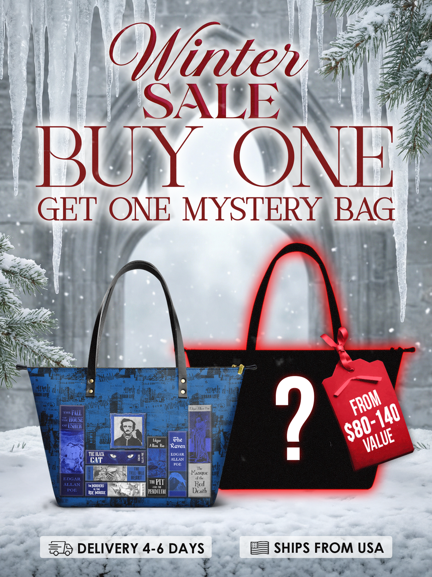If your heart beats to the rhythm of being buried alive or placed in premature entombment, Lettoria's Poe's Library Tote is your talisman.
