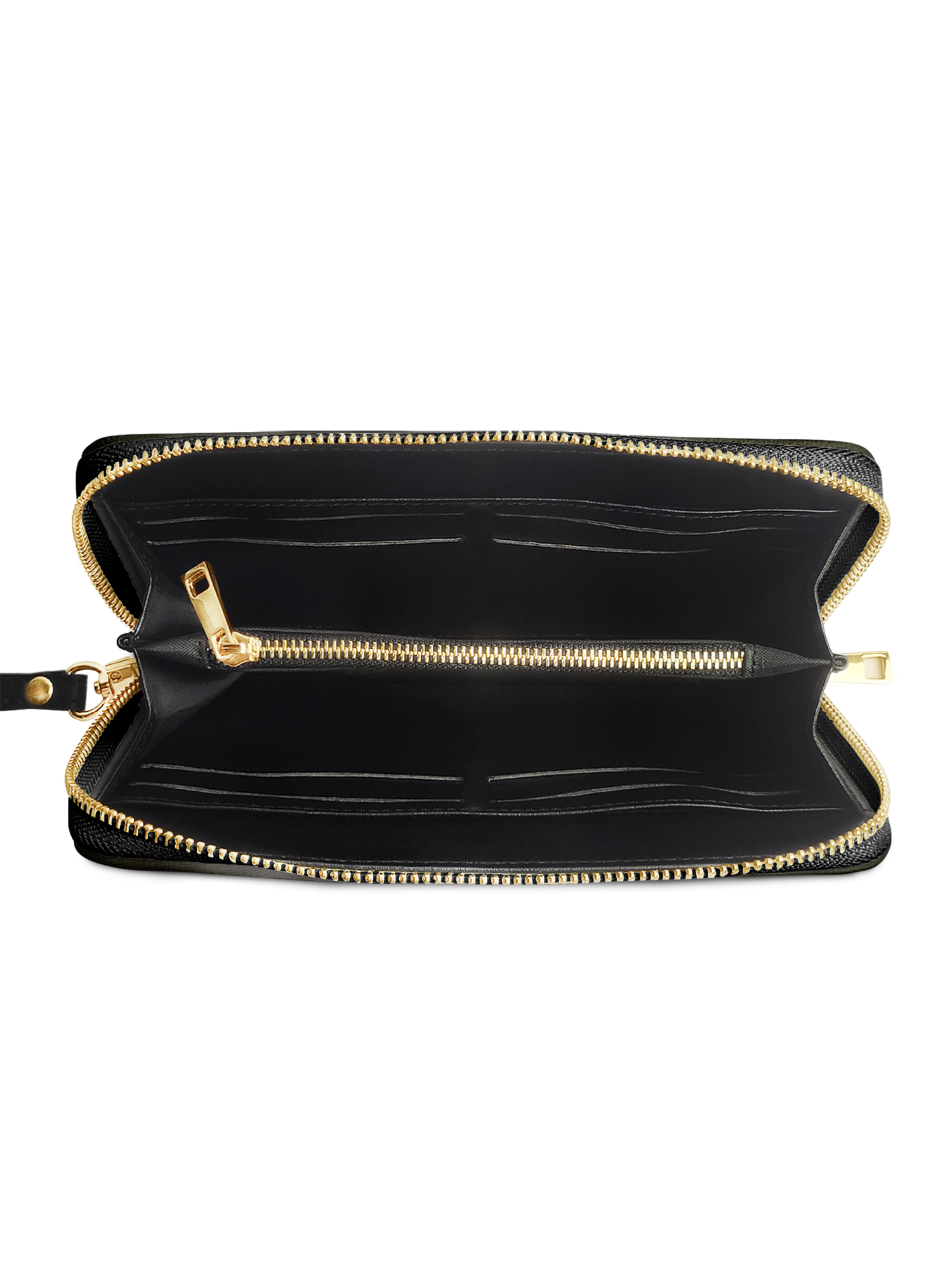 This wallet is spacious and stylish, holding beauty essentials, cash, cards, and a phone with ease.