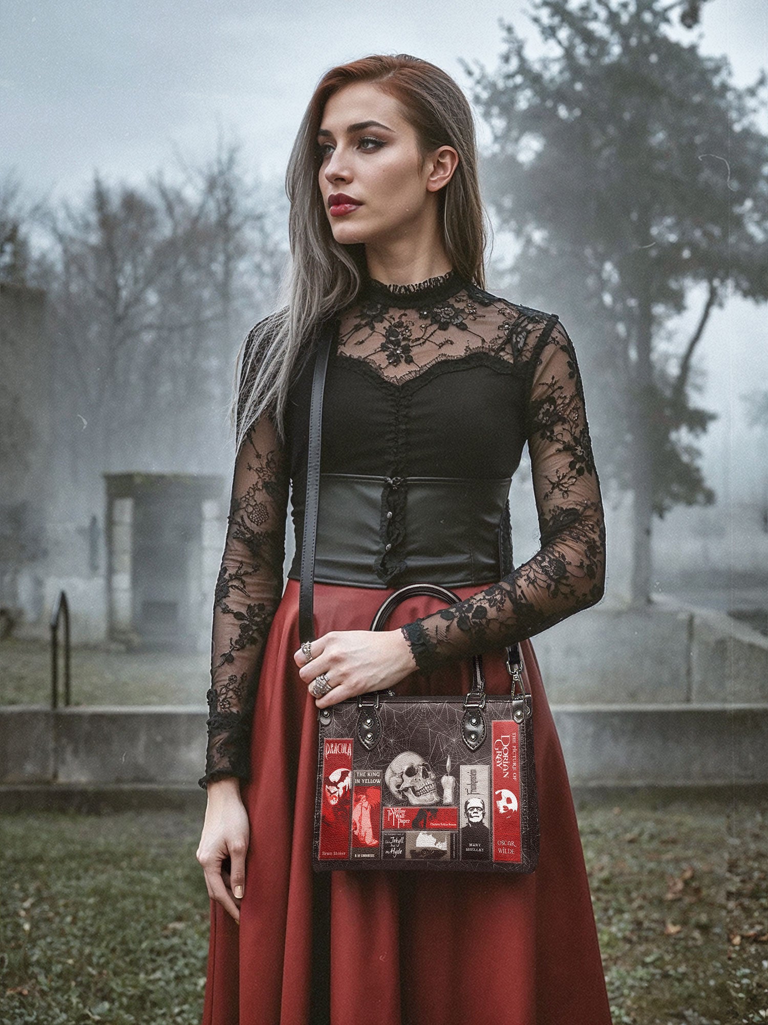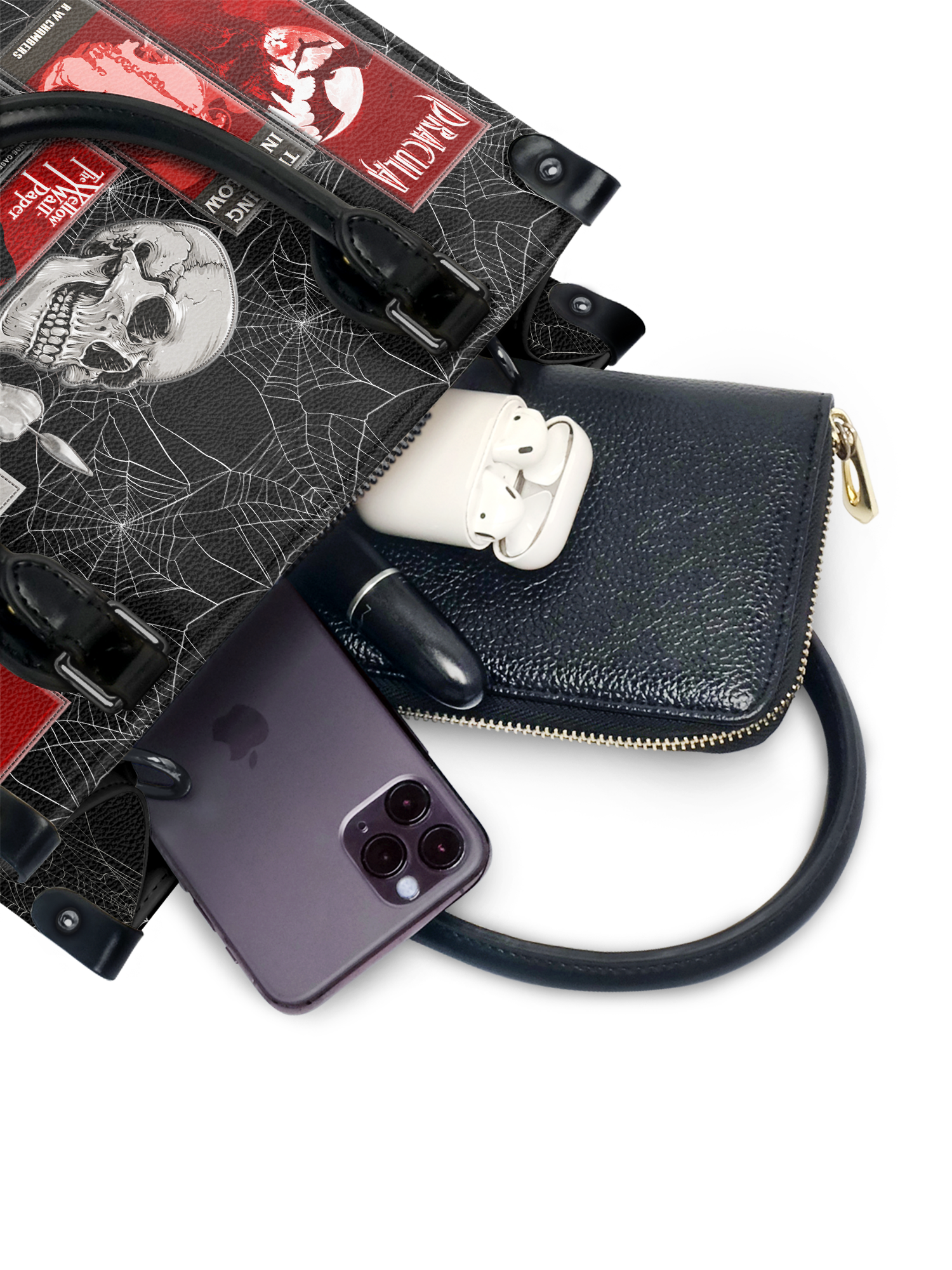 "The Codex of Gothic Tales" Black Widow’s Kiss - Black Interior - Small Leather Handbag