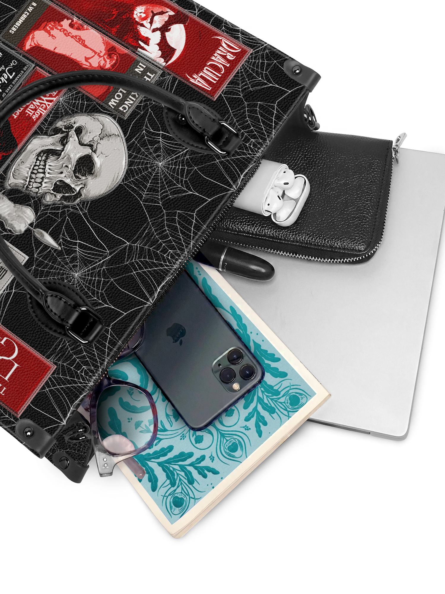 "The Codex of Gothic Tales" Black Widow’s Kiss Leather Handbag Deal