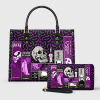 So I ordered a wallet. The " Poe Library" in ashen black. I already had a purse and really didn't think I needed another one but I really needed a new wallet.. But the problem was I really wanted the "Poes Library" in that gorgeous blue. So I did what anybody else would do the next day.I ordered it and the matching wallet. I got them all the same day.I fell in love with my blue purse! All my favorite stories ,the man himself , the blue, the black ....gorgeous. The interior, that soft yellow, Perfect! Enough room for everything that I need.