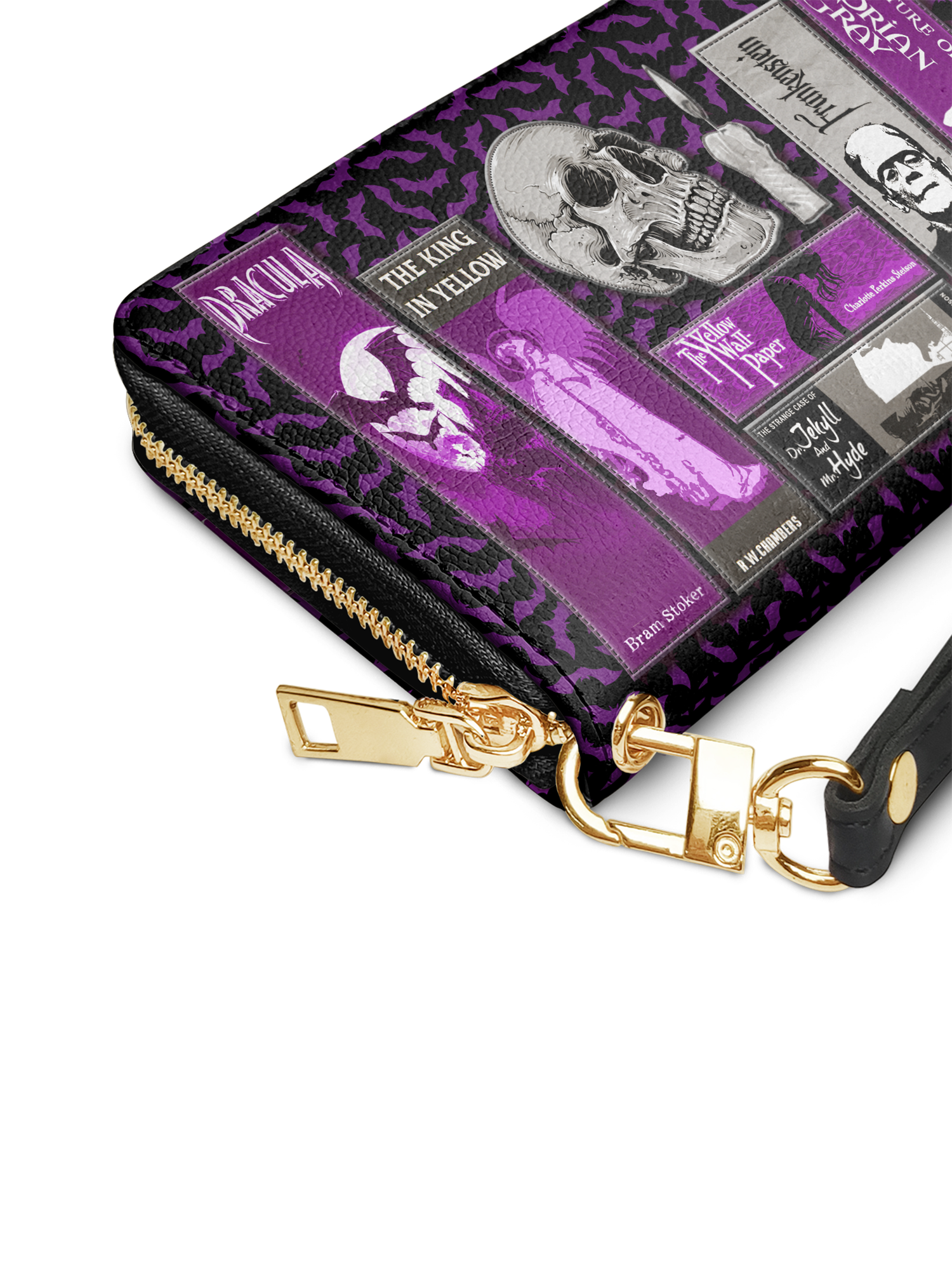 Omg! I love this wallet! I got the Codex of Gothic Tales with the cobwebs. I'm so excited I can't think of the actual title. Please forgive me. It's more stunning in person than on the website. I am saving up for the purse now. I highly recommend this site and products. Absolutely stunning wallet.