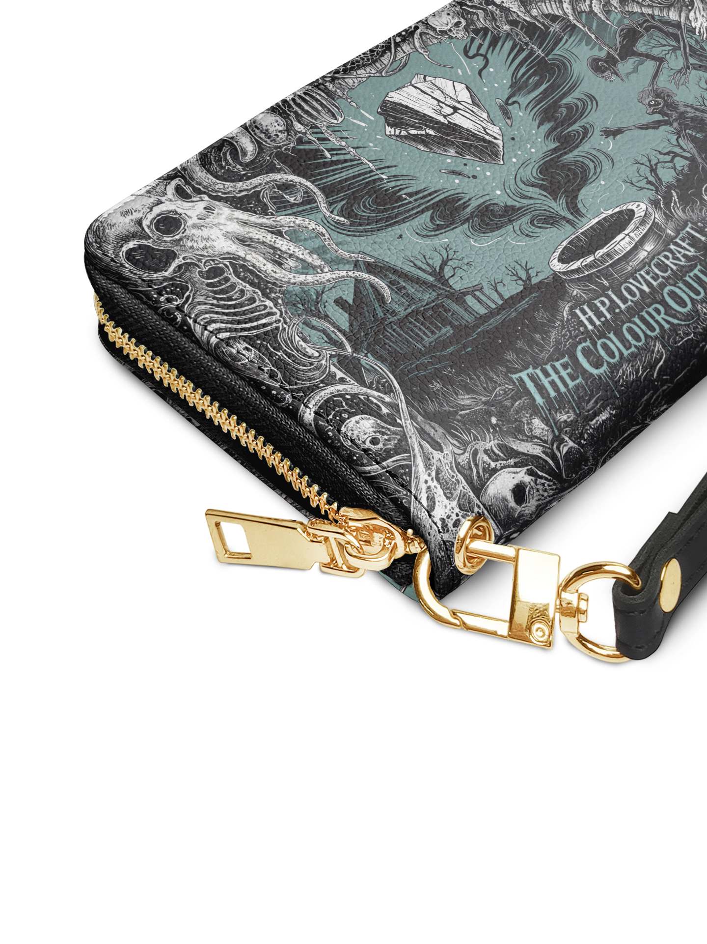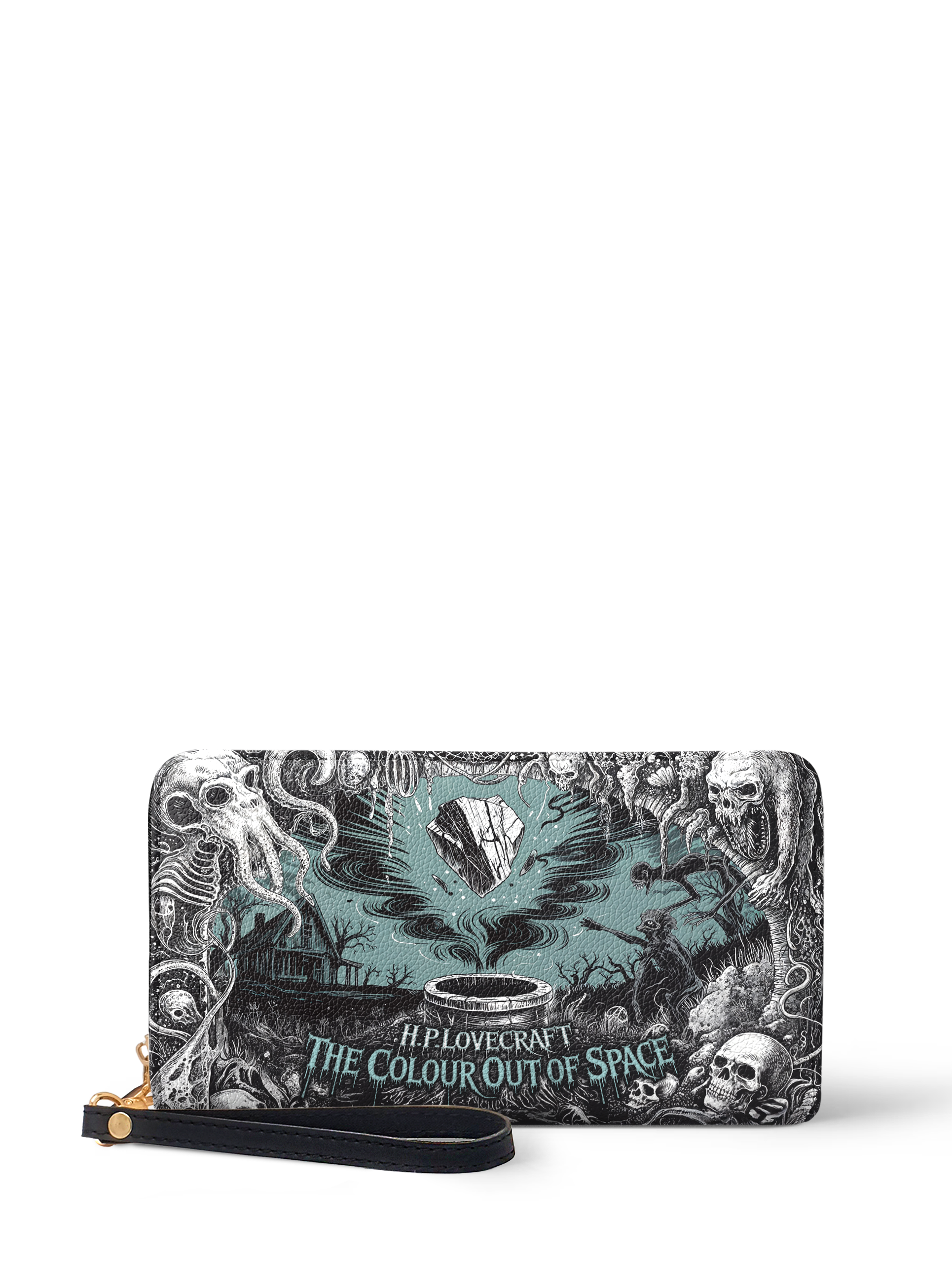 Omg! I love this wallet! I got the Codex of Gothic Tales with the cobwebs. I'm so excited I can't think of the actual title. Please forgive me. It's more stunning in person than on the website. I am saving up for the purse now. I highly recommend this site and products. Absolutely stunning wallet.