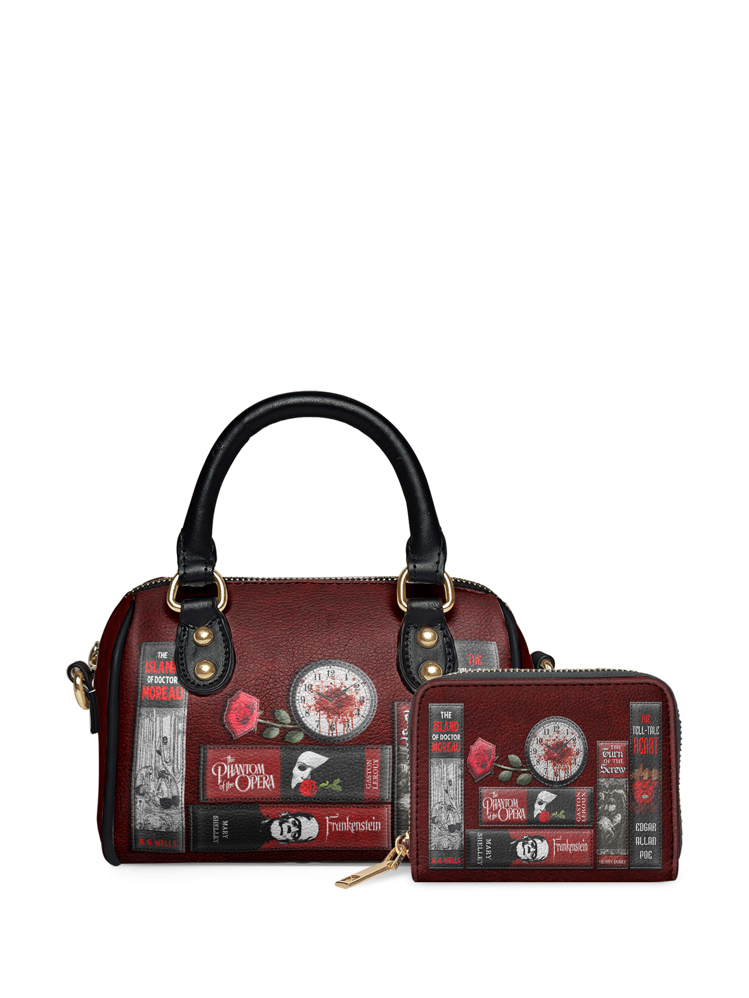 Bound in mystery and dripping in crimson, this mini satchel feels like a relic from a forbidden library—whispers trapped in leather, secrets stitched into every line. It’s made for those who crave the thrill of the arcane, the power of the written word, and the elegance of the macabre.