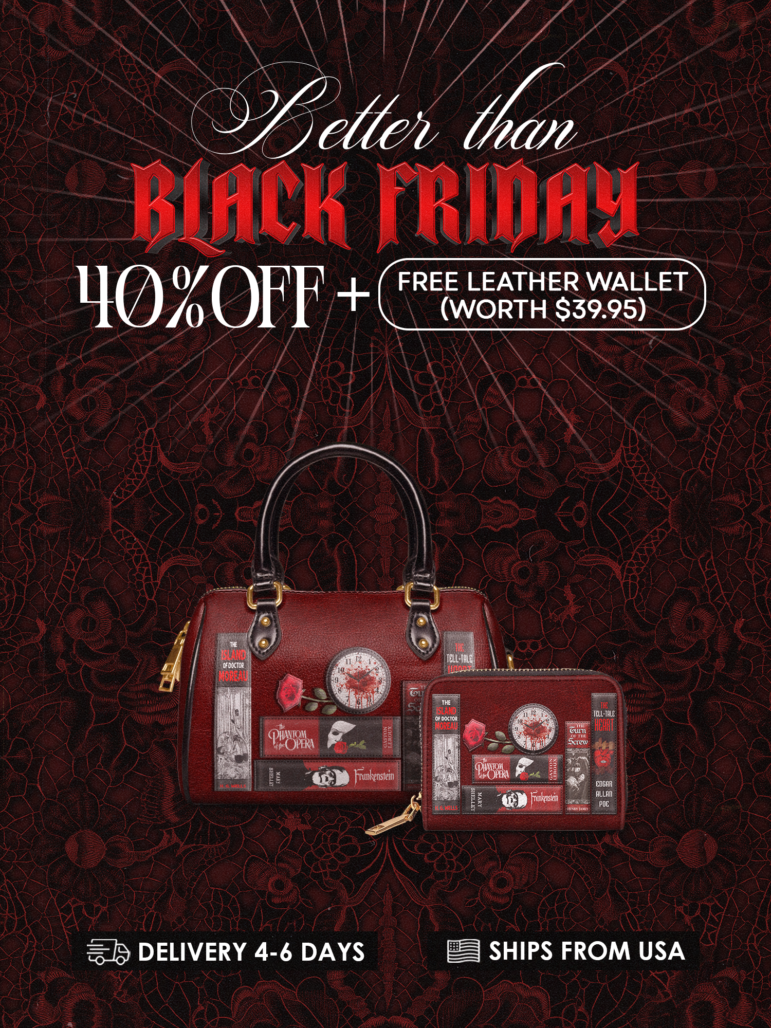 This mini satchel is where dark charm meets everyday function—perfect for horror lovers who like their accessories with a little bite.