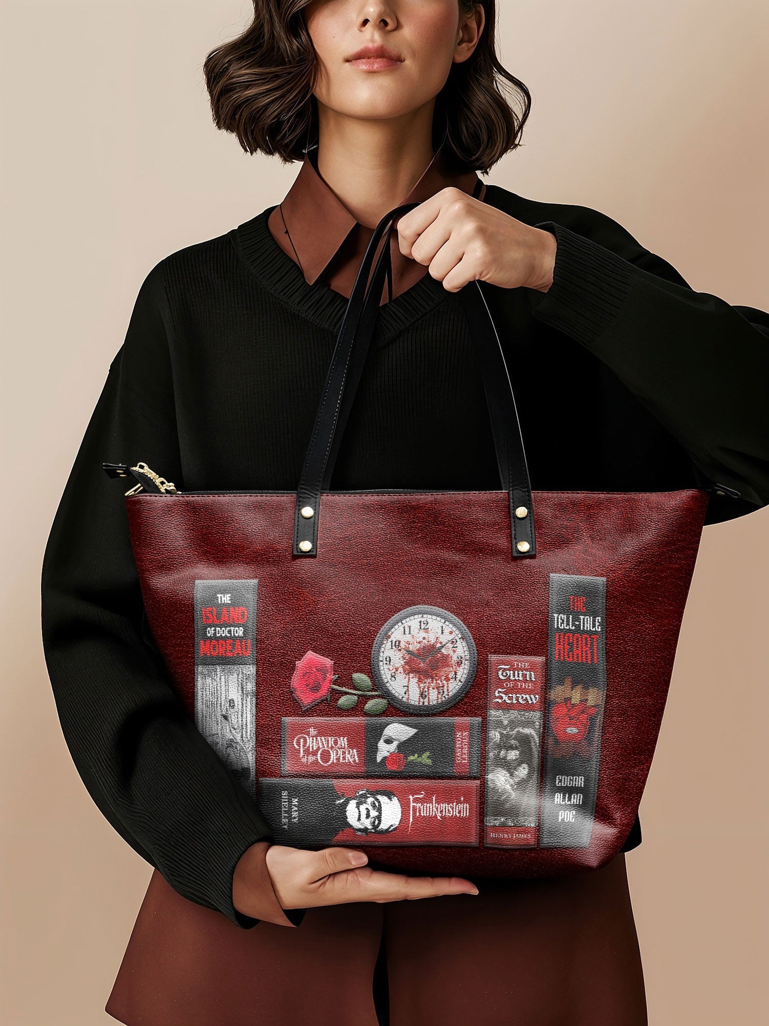 Handcrafted in the United States, this Premium Vegan Leather tote transforms mundane errands into a procession through the House of Usher.