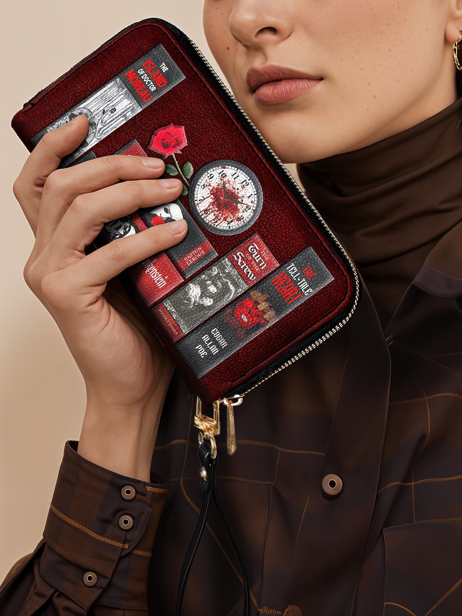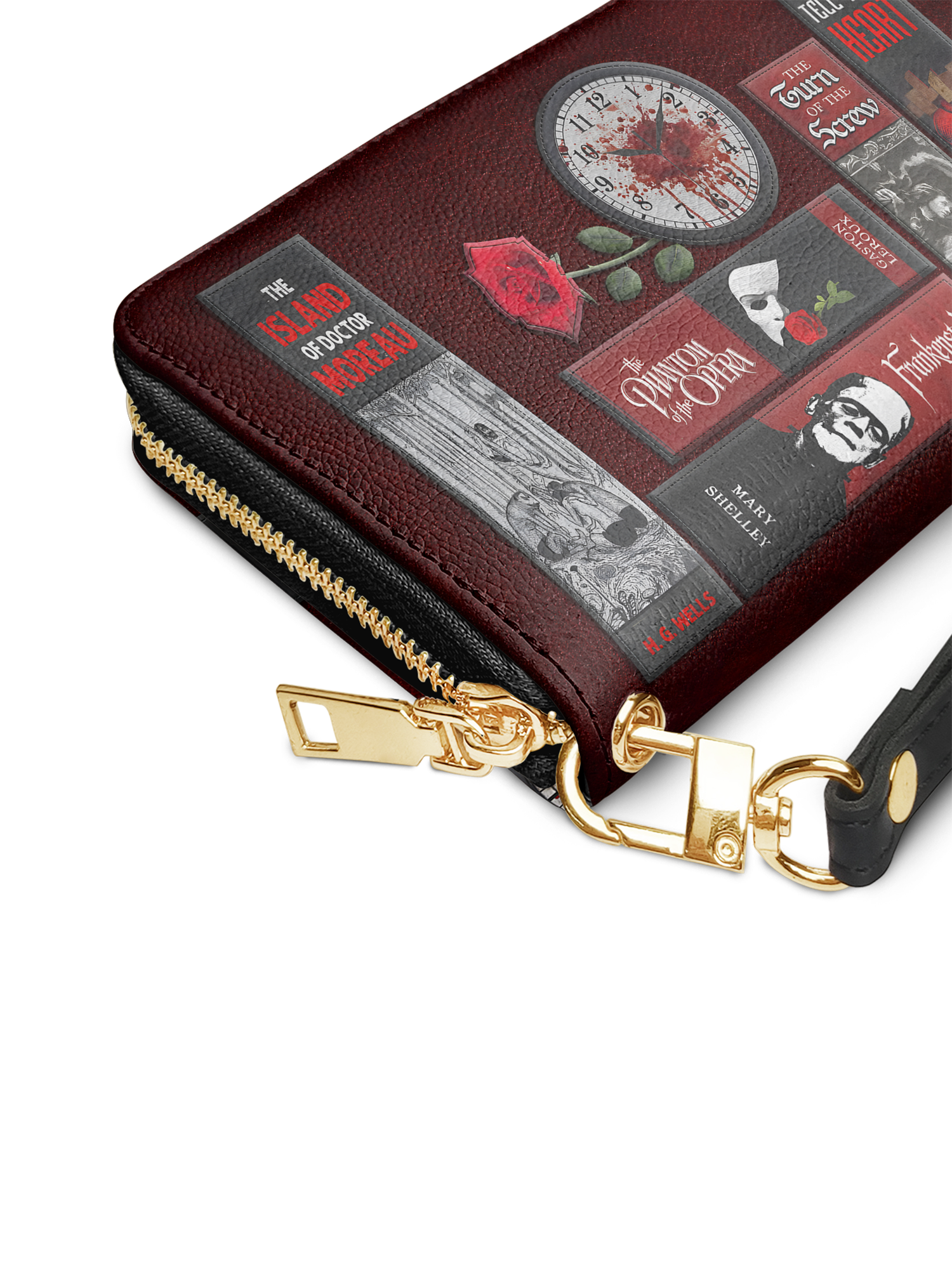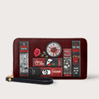 Omg! I love this wallet! I got the Codex of Gothic Tales with the cobwebs. I'm so excited I can't think of the actual title. Please forgive me. It's more stunning in person than on the website. I am saving up for the purse now. I highly recommend this site and products. Absolutely stunning wallet.