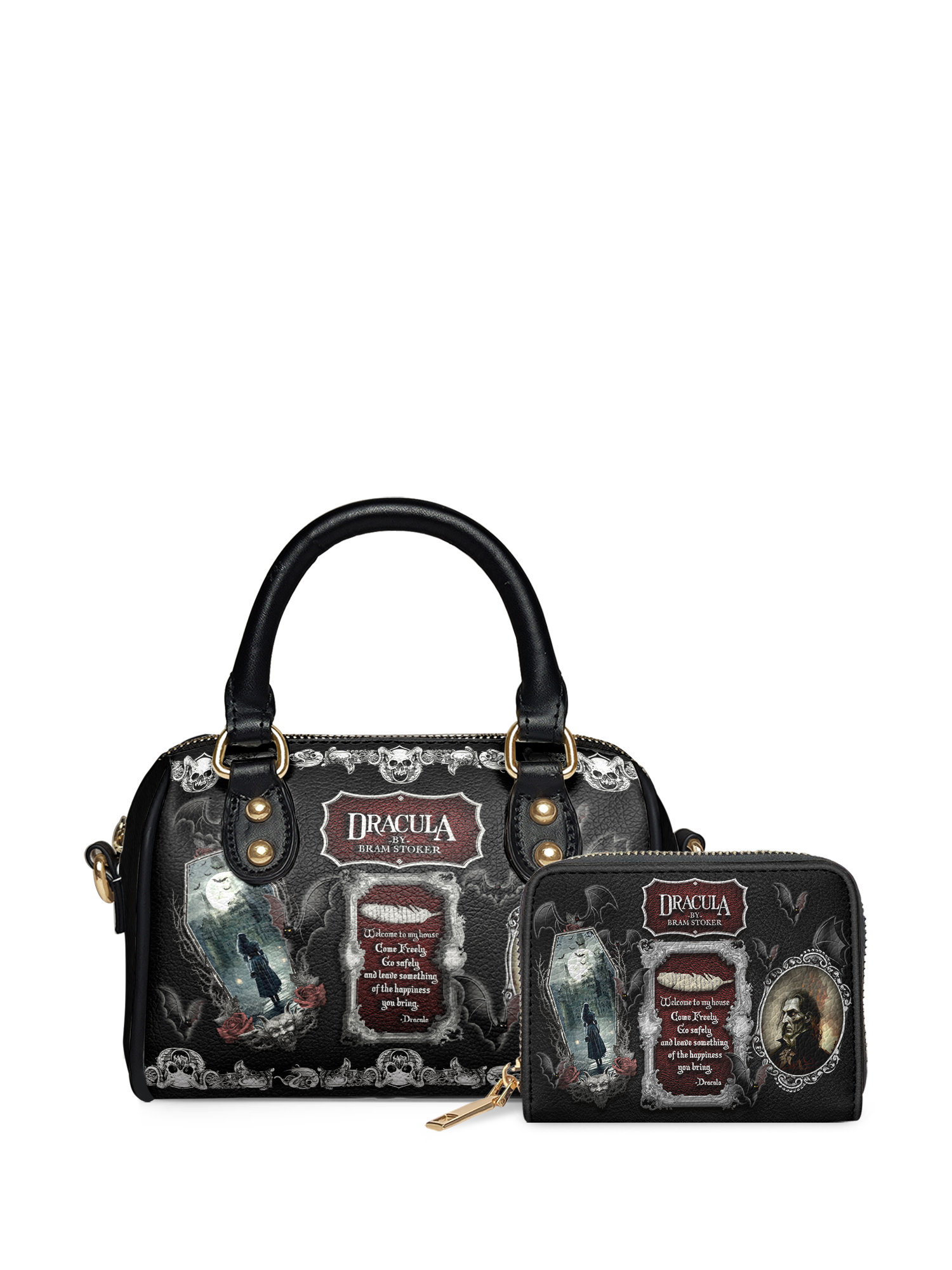 Seductive, eerie, and timeless—this mini satchel channels the dark allure of Dracula himself. It’s not just inspired by the story; it carries the weight of every whispered warning, every shadowed corridor, every heartbeat that dares to trust. Made for those drawn to mystery, danger, and irresistible gothic romance.