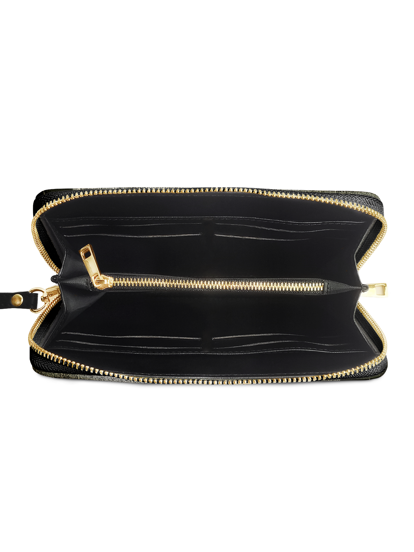 This wallet is spacious and stylish, holding beauty essentials, cash, cards, and a phone with ease.