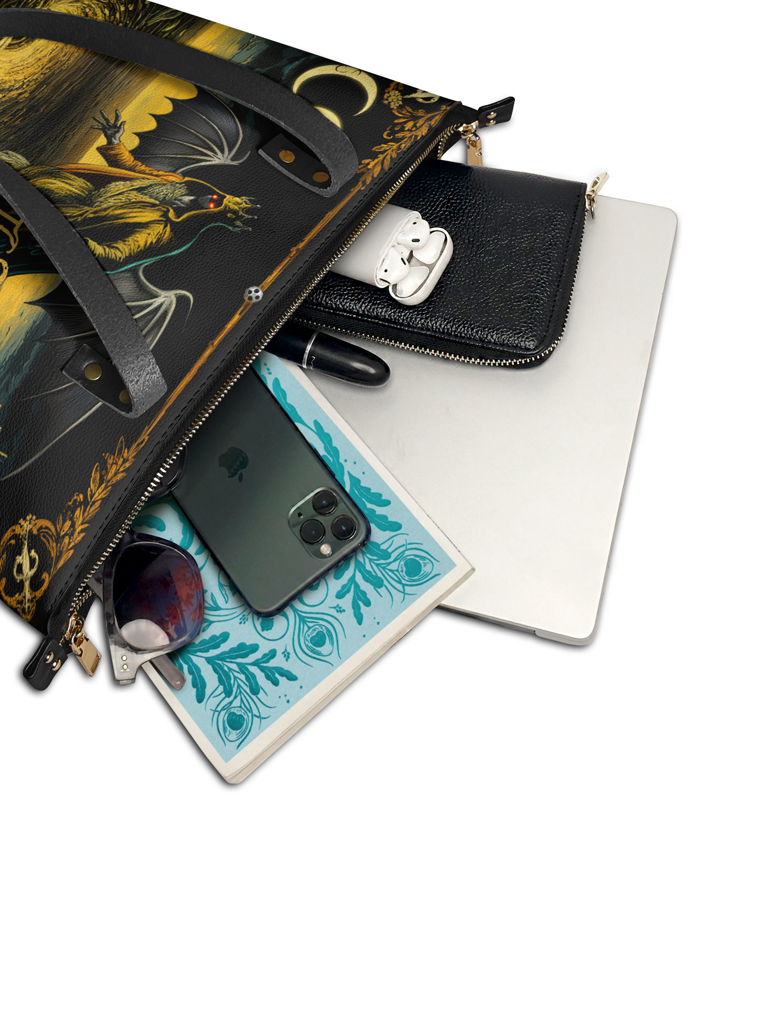 This tote bag is spacious and practical, easily fitting a 13" laptop, books, and daily must-haves.