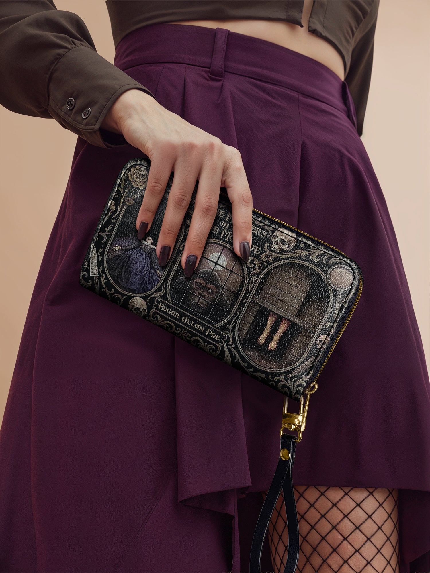 Omg! I love this wallet! I got the Codex of Gothic Tales with the cobwebs. I'm so excited I can't think of the actual title. Please forgive me. It's more stunning in person than on the website. I am saving up for the purse now. I highly recommend this site and products. Absolutely stunning wallet.