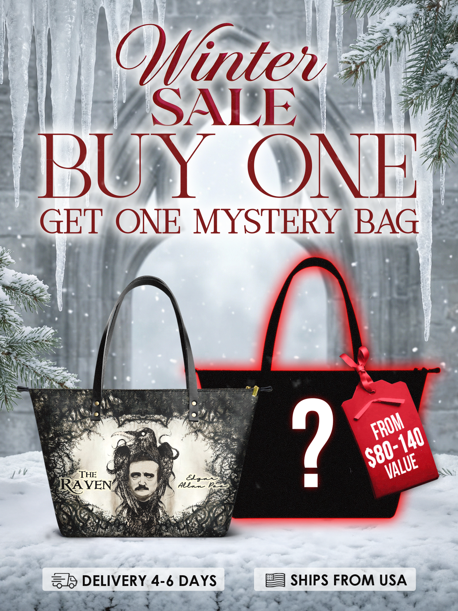 This tote is the chameleon of the crypt: sling it over a wool cape for windswept walks reciting Annabel Lee, or pair it with tailored blacks for a midnight masquerade.
