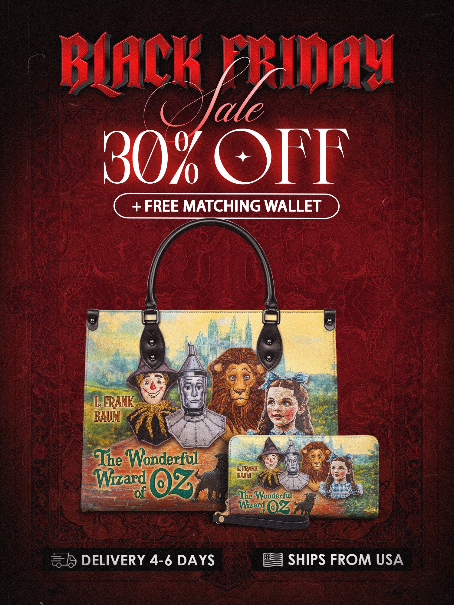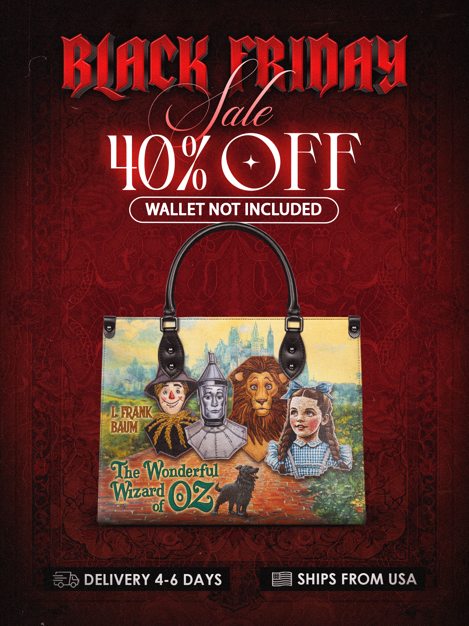 This Wonderful Wizard of Oz Leather Handbag is full of adventure, magic, and heart. The vintage-style design brings Dorothy, Toto, and her friends to life as they follow the yellow brick road to the Emerald City. The colors are rich, the details are classic, and it feels like stepping right into the story. Made from high-quality leather with sturdy black handles and gold accents, this bag is perfect for book lovers, dreamers, and anyone who knows there’s no place like home.
