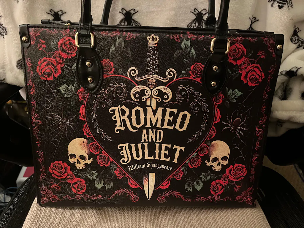 This tote is the chameleon of the crypt: sling it over a wool cape for windswept walks reciting Annabel Lee, or pair it with tailored blacks for a midnight masquerade.