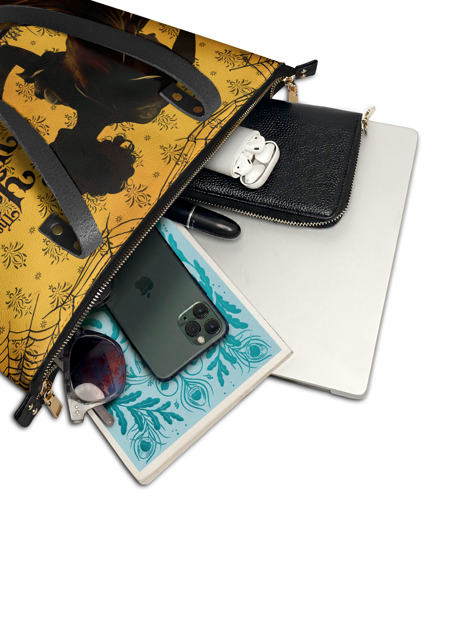 Handcrafted in the United States, this Premium Vegan Leather tote transforms mundane errands into a procession through the House of Usher.